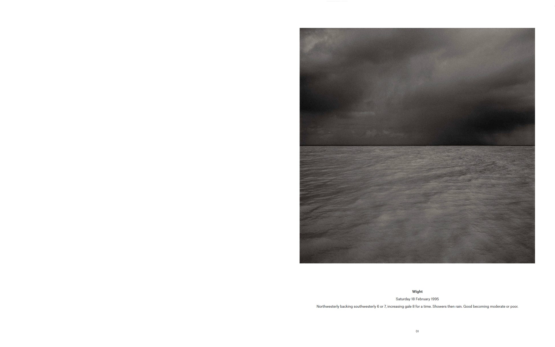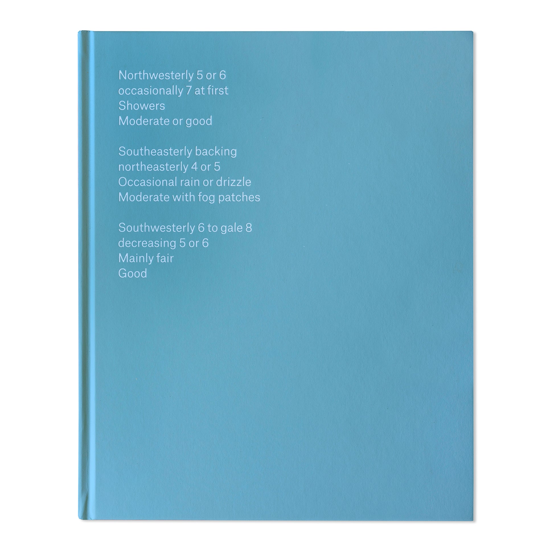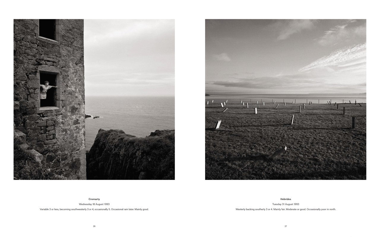But for millions of landlubbing radio listeners it is more than this; the enigmatic language of the forecast has entered public conciousness, creating a landscape of the imagination and confirming romantic notions of Britain's island status. Captioned by the 0600hrs forecast on the day they were taken, these photographs attempt to challenge our assumptions of these far-flung places.