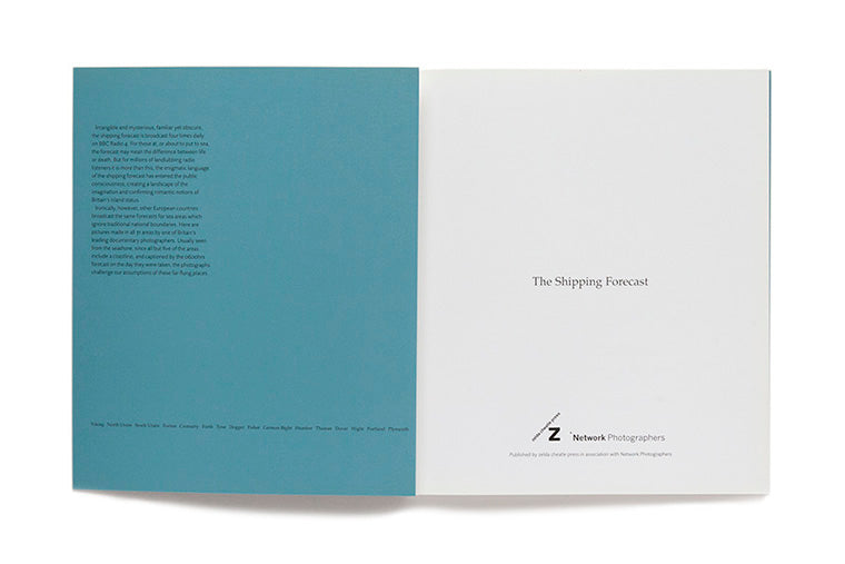 First edition (1700 printed) of Mark Power's first book, with photographs from the 31 sea areas featured in the shipping forecast, broadcast four times daily on BBC radio. With an introductory essay by David Chandler. Signed by Mark Power.